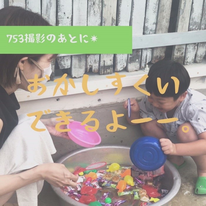 今なら、七五三撮影のあとに、子ども達が楽しめるお菓子すくいも用意しています★撮影後のお楽しみとして、お子さん達もスムーズに撮影に協力してくれるかも?!