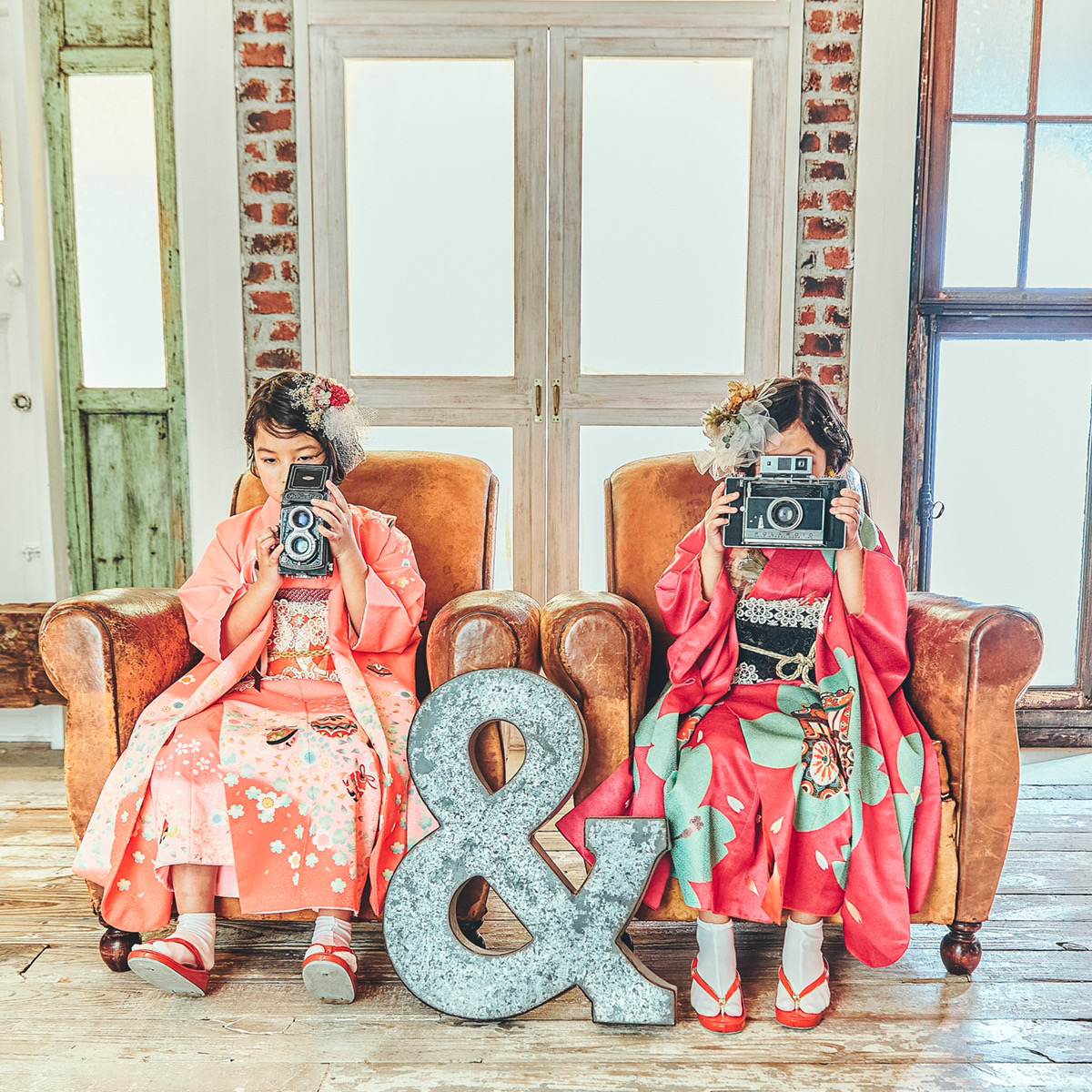 バコパ写真館のお洒落なスタジオに合うように選ばれた、他にはないお洒落な着物に、お子様にもご両親にもワクワクしていただけるはず★