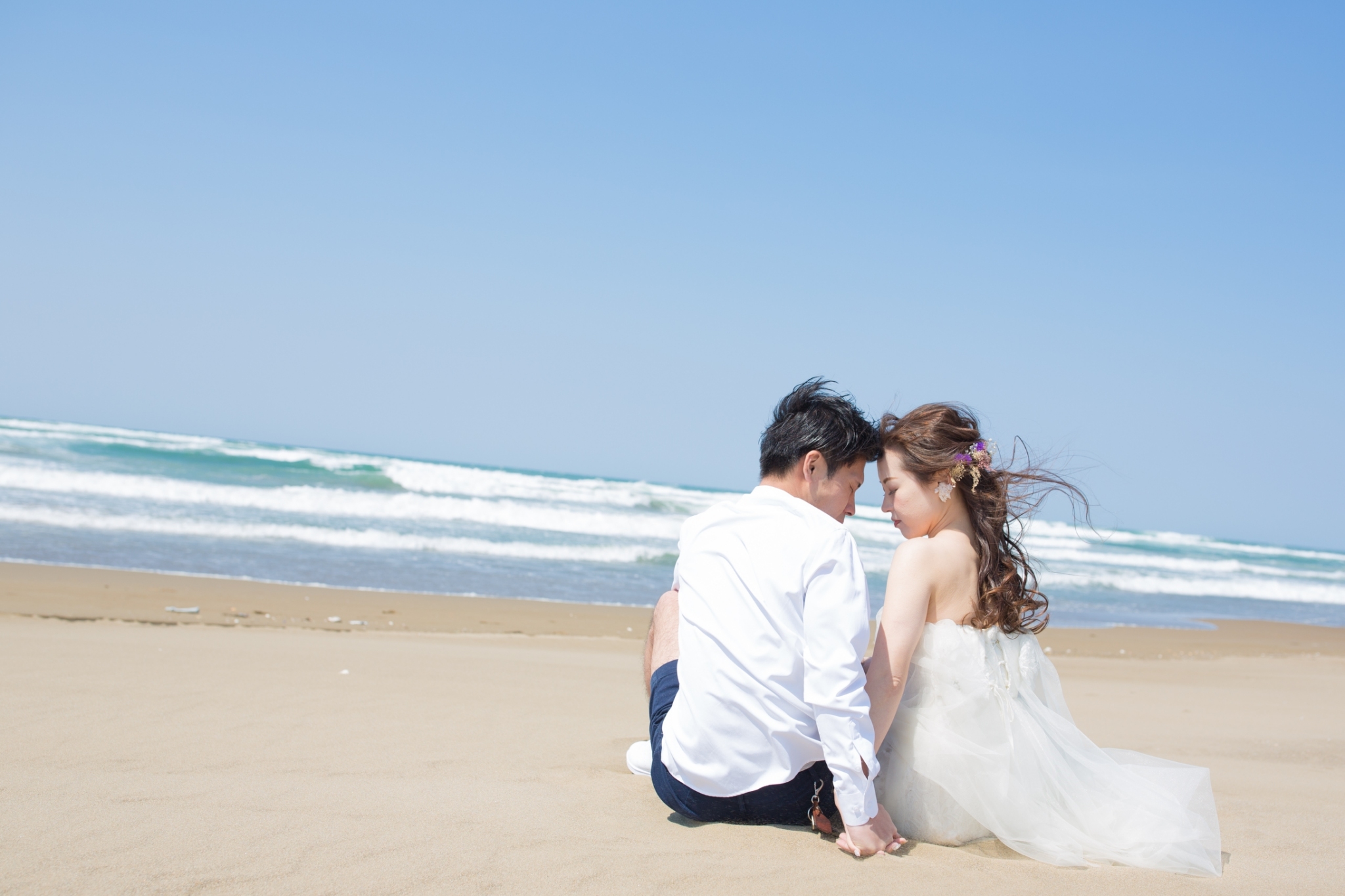 サマーウェディングフォトを海で撮影される場合、気候的にもまだ本格的に暑くない5月・6月の晴れた日をオススメしています!
